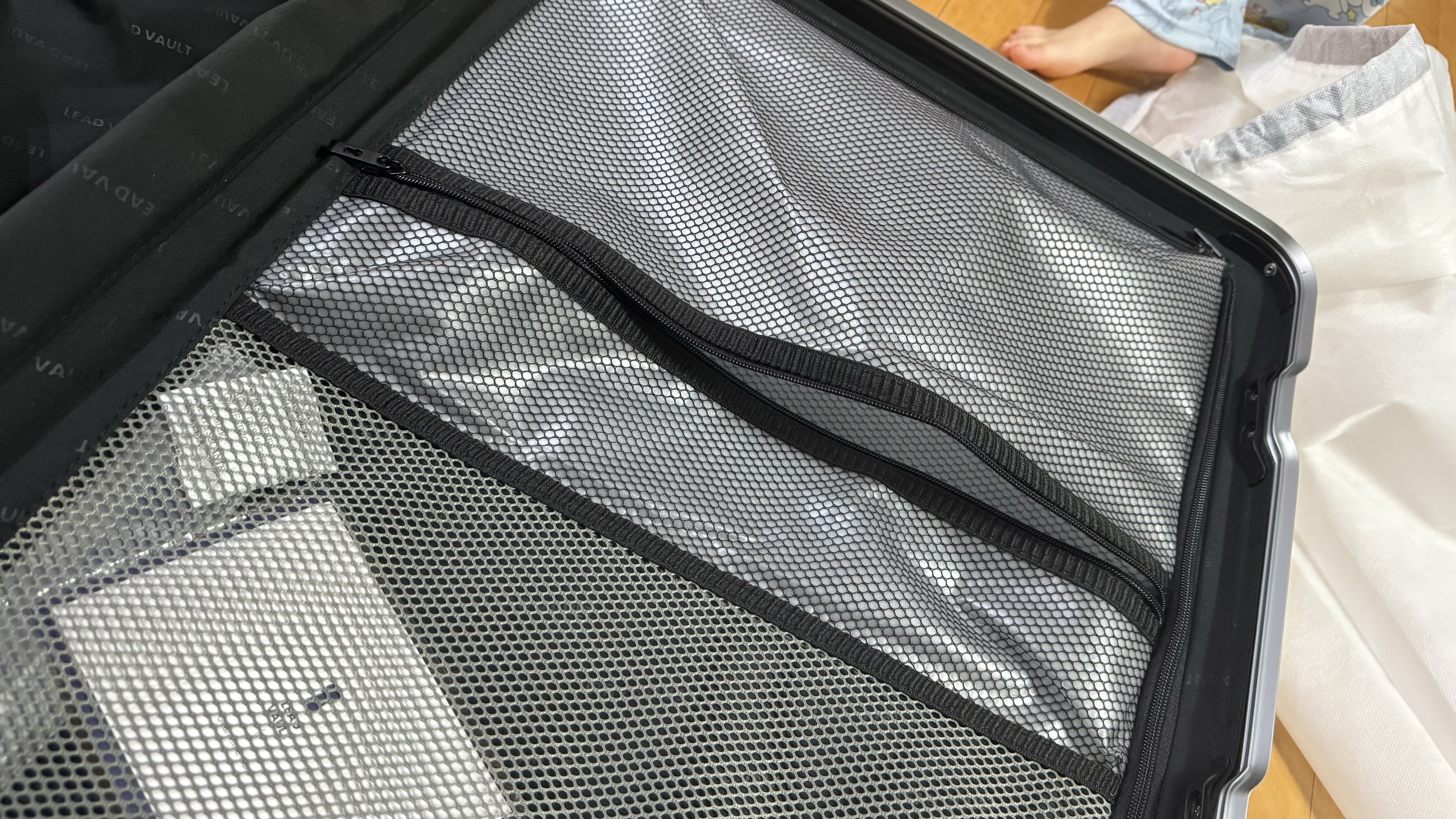 의외로 마음에 들었던 부분인데 , 지퍼로 칸막이가 되어 있는 부분의 한 칸이 딱 붙어서 부피가 적은 얇은 것들만 수납할 수 있는게 아니라, 조금 볼륨이 있는 물건들도 넣을 수 있게 구성되어 있어서 유용할 것 같다.