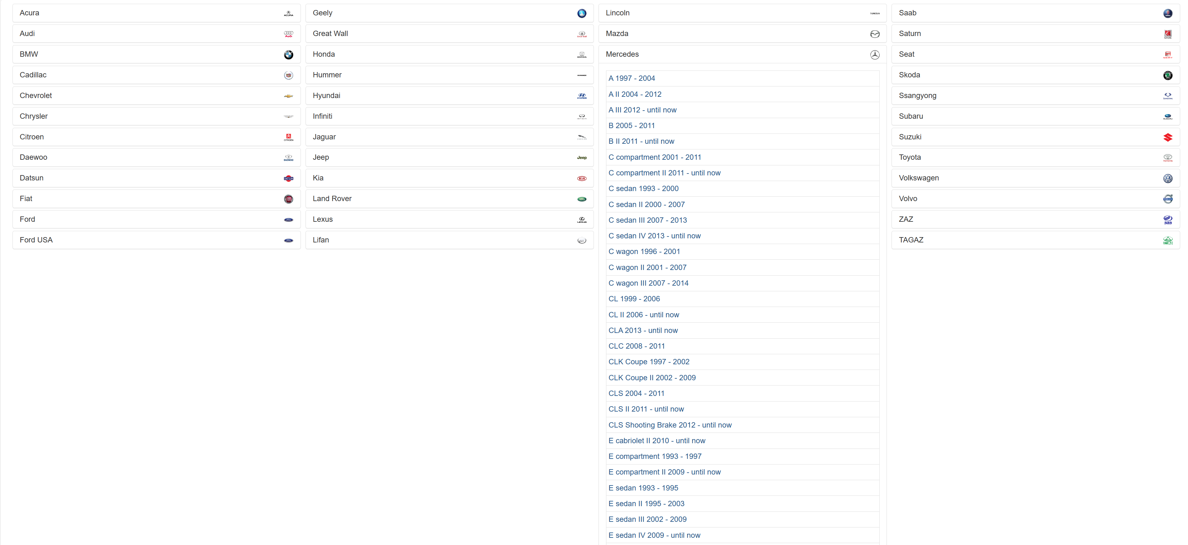 1. 여기서 저는 벤츠 부품을 확인해 볼 거니 "벤츠" 선택합니다.